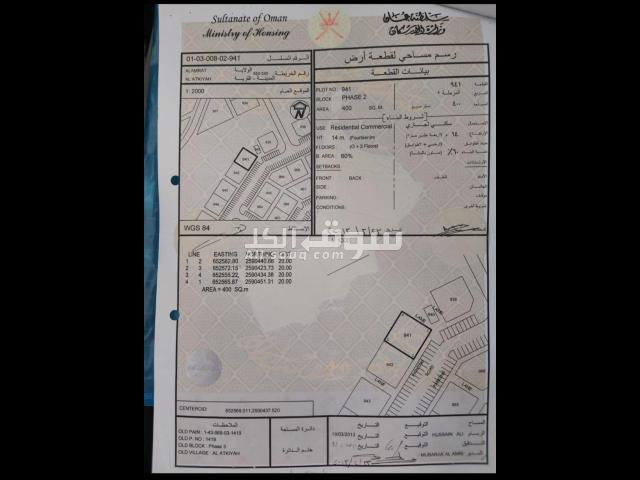 * الاستخدام: سكني تجاري (مسموح بناء أرضي + 3 طوابق).