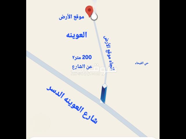 5- موقع الأرض يبعد 200 متر٢ عن الشارع العوينه/ الدسر