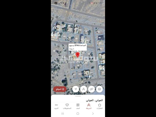 الارض ممتزه كورنر مفتوحه من ثلاث جهات خلف المركز الصحي بولايه ع العوابي قريبه من مسجد الشعبيه الشرقيه العوابي قريبه من منازل قائمه .