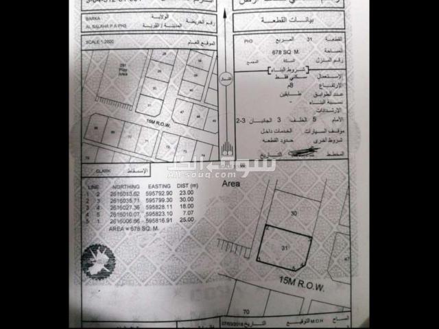 للبيع أرض سكني ممتازه في بركاء السلاحه ،